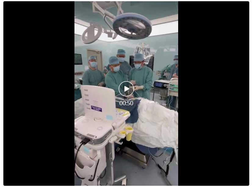 這場手術(shù)演示最終在潘鐵軍教授高超的手術(shù)技術(shù)和小強零角度專用探頭的輔助下成功完成,潘鐵軍教授對這款能實現(xiàn)零角度穿刺的專用探頭表示高度認可!